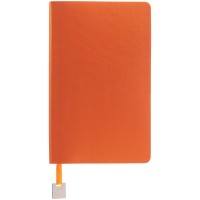 Ежедневник с гибкой обложкой, выполнен из материалов Soft Touch Pearl, оранжевый ОО, и Latte, оранжевый (внутренняя часть обложки), дополнен ляссе в цвет обложки с металлическим шильдиком.