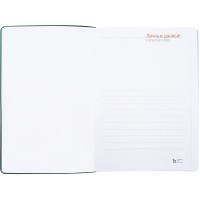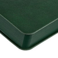 Гибкая обложка ежедневника выполнена из материала Latte, зеленый FF. Внутри корешка — специальное место для крепления ручки размером до 15х0,9 см.