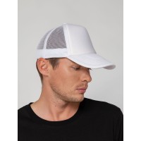 Стандартная модель с 5 клиньями без лобового шва в нестандартном исполнении. Передний клин и козырек выполнены из полиэстера с наполнителем из поролона, боковые и задние клинья — из сетки. Размер регулируется с помощью пластиковой застежки.
