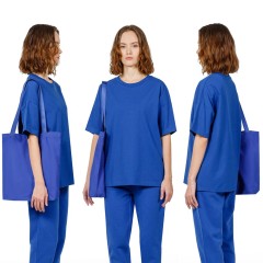 Базовый шопер разработан в рамках единой коллекции одежды и аксессуаров и легко комбинируется с ее элементами. Специально спроектированные лекала и технологии пошива открывают простор для любых вариантов кастомизации и нанесения изображений. На видимой части изделий нет лейблов с айдентикой бренда, а название бренда с уходника легко удалить.