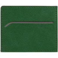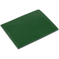 Чехол выполнен из материала Petrus, зеленый FF, дополнен окрашенным срезом края и внутренним карманом из серого картона. Имеет 4 отделения для кредитных карт и 1 отделение для купюр.