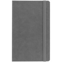 Ежедневник с твердой обложкой, выполнен из материала LaFite, серый СС, дополнен резинкой и ляссе в цвет обложки.