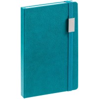 Ежедневник с твердой обложкой, выполнен из материала LaFite, цвет морской волны II, дополнен резинкой с металлическим прямоугольным шильдом и ляссе в цвет обложки.