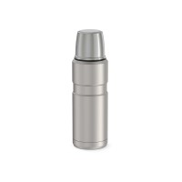 Классический мини-термос знаменитой серии KING не только выглядит превосходно, но и обладает безупречными характеристиками, как и все представители «королевской» линейки легендарного бренда THERMOS. Напитки сохраняются в нём горячими не менее 12 часов или холодными более суток благодаря инновационной технологии вакуумизации межстеночного пространства. Термоизолирующие свойства термоса усиливает глубокая винтовая пробка, в конструкции которой предусмотрены специальные пазы для выливания напитка, что позволяет не выкручивать пробку полностью и тем самым снизить воздействие температуры окружающей среды. Двуслойную крышку из нержавеющей стали и термостойкого пищевого пластика можно использовать как чашку.Термосы модельного ряда SK-2000 изготавливаются на собственных заводах компании THERMOS по патенту United States Patent D572.981 в соответствии с Международным стандартом качества EN12546-1:2000. Колба и корпус термоса KING SK-2010 - из пищевой коррозионностойкой стали 18/8 AISI 304, обеспечивающей прочность, термостойкость и устойчивость к агрессивным средам. Пробка изготовлена из пищевого пластика без содержания бисфенола-А (BPA free), а прокладка, отвечающая за герметичность изделия, – из гигиеничного термостойкого силикона. Материалы не выделяют и не впитывают посторонние запахи.Цвет стали подчёркивает классический стиль термоса, который будет актуален всегда. Благодаря компактным размерам термос легко поместится в любую сумку или рюкзак, позволяя наслаждаться любимыми напитками в течение всего активного дня.