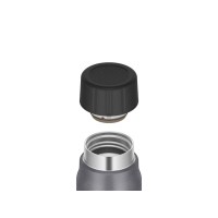 Термобутылка серии FJK– настоящий подарок для любителей газированных напитков. Особая конструкция крышки-пробки позволяет безопасно открывать заполненный термос даже после его случайного встряхивания — пробка не вылетит и напиток не выльется стремительно через край. Крышка-пробка состоит из двух деталей с системой сброса давления, образующегося в закрытой ёмкости при хранении газированных жидкостей. Термобутылка легко открывается в два шага – сначала необходимо чуть-чуть повернуть пробку против часовой стрелки, чтобы выровнять давление, и затем полностью выкрутить пробку. Вакуумная термоизоляция, созданная по уникальной технологии, защищает напиток от нагревания в жару, тем самым минимизируя изменение давления внутри бутылки, и сохраняет его прохладным в течение суток. На корпусе термоса не образуется конденсат от холодных жидкостей, поэтому термобутылка не скользит в руке. Скругленный край горлышка обеспечивает особый комфорт при питье из термобутылки. Благодаря узкой форме термобутылку удобно держать в руке и женщинам, и детям.Термос FJK-500 SL объемом 500 мл - компактный и лёгкий, он весит всего лишь 200 грамм. Размеры позволяют легко размещать его в сумке или боковом кармане рюкзака, а диаметр основания подходит для автомобильных подстаканников и велосипедных держателей. Все материалы, из которых изготовлен термос, абсолютно безопасные, экологически чистые и пригодны для вторичной переработки. Пищевая коррозионностойкая сталь 18/8 AISI 304 Stainless Steel, применяемая при производстве термоса, инертна по отношению к содержимому и не влияет на вкус напитков, устойчива к перепадам температур, обеспечивает прочность термоса.Винтовая крышка-пробка произведена из современных сополимеров, которые не содержат бисфенол А (BPA free), отличаются термостойкостью, механической прочностью и долговечностью, они не выделяют и не поглощают посторонние запахи. Прокладка, отвечающая за герметичность термобутылки, изготовлена из термостойкого пищевого силикона.Технология бесшовной сварки делает стенки термоса абсолютно гладкими, поэтому на них не задерживаются остатки напитков и не впитываются их ароматы. Термос прост в уходе, его легко мыть. Термос с вакуумной изоляцией можно использовать и для хранения холодных спортивных напитков, смузи со льдом, тёплых напитков, но горячие напитки рекомендуется пить не из горлышка, а используя чашку или стакан, во избежание ожогов. Стильный внешний вид термобутылки создаёт уникальное покрытие серебристого цвета. Модель THERMOS® FJK-500 SL полностью соответствует Международному стандарту качества EN-12546-1:2000.