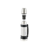Обеспечение своего владельца горячим или холодным напитком в пути, на рыбалке или охоте – главная роль практичного и комфортного в использовании термоса серии WORK легендарного бренда THERMOS. Инновационная технология создания глубокого вакуума, разработанная производителем, и особенности конструкции позволяют сохранять температуру напитков не менее суток.Термос выдержит любые экстремальные ситуации – его корпус усилен специальными бамперами, а крепкое основание с противоскользящей накладкой не боится ударов при падении и обеспечивает устойчивость на любых поверхностях. Усиливает термоизолирующие свойства термоса глубокая винтовая пробка. Герметичная поворотная пробка имеет специальные пазы, позволяющие выливать напиток, не отвинчивая её полностью. На верхней части пробки предусмотрены указатели потока жидкости.Термос оснащён эргономичной ручкой, созданной для удобной транспортировки и размещения в багаже, а также полноразмерной крышкой-чашкой. Оригинальный и парадный вид термоса подчеркивает износостойкое покрытие белого цвета, за которым легко ухаживать.Термосы серии WORK производятся на собственных заводах компании THERMOS по патенту United States Patent D472107 с соблюдением Международного стандарта качества EN12545-1:2000. Все материалы экологически чистые, безопасные, термостойкие и ударопрочные, не впитывают и не выделяют посторонние запахи, не содержат бисфенол А (BPA free) и поливинилхлорид (PVC free). Пищевая коррозионностойкая сталь 18/8 AISI 304 Stainless Steel, из которой изготовлены корпус и колба термоса, не вступает в химические реакции с содержимым, поэтому напитки остаются в термосе длительное время не только горячими или холодными, но и вкусными, и ароматными.