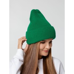 Удлиненная шапка объемной фактурной вязки с отворотом.