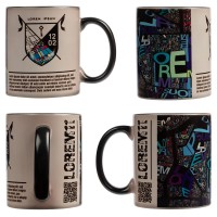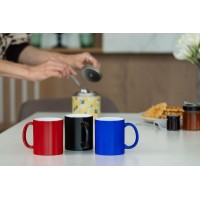 Цветное покрытие создает эффект «цветного стекла»: нанесение выглядит так, словно мы смотрим на него через цветное стекло. Используйте более светлые краски, если хотите, чтобы изображение проглядывало сквозь цветной слой как можно меньше. Лучше всего краски нанесения перекрываются черным цветом, поэтому менее всего изображение будет заметно на черной кружке. Выполнить визуально незаметное нанесение технически невозможно даже при использовании цветов сходных или идентичных цвету кружки. Емкость 330 мл. Поставляется без индивидуальной упаковки.