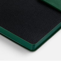 Ежедневник с гибкой обложкой, выполнен из материала La Fite, черный АА и NubuckTouch, зелёный, дополнен зеленым ляссе и хлястиком на кнопке.