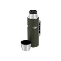 Классический термос серии KING сохраняет напитки горячими или холодными не менее 36 часов. Высокие температурные характеристики обеспечиваются за счет уникальной технологии вакуумной термоизоляции, разработанной производителем, и материалов премиум-категории, используемых при производстве термоса. Корпус и колба из пищевой термостойкой нержавеющей стали делают термос прочным и долговечным, длительно поддерживают не только температуру напитков, но также сохраняют их вкус и аромат. Винтовая пробка изготавливается из пищевого пластика, устойчивого к высоким температурам и механическим повреждениям, безопасного при контакте с пищевыми продуктами, при его производстве не используется бисфенол А (BPA free), он не впитывает и не выделяет посторонние запахи. Глубокая пробка обеспечивает герметичность термоса и минимизирует влияние температуры окружающей среды на содержимое термоса.Термос комфортен в использовании и уходе. Чтобы налить напиток в чашку, достаточно повернуть пробку на пол-оборота и не выкручивать её полностью. На верхней стороне пробки предусмотрены указатели потока жидкости. Двуслойная полноразмерная чашка из термостойкого пищевого пластика и нержавеющей стали одновременно выполняет роль крышки. Для удобства переноски и размещения в багаже термос оснащён эргономичной складной ручкой. Уникальное матовое покрытие цвета хаки надолго сохранит первоначальный вид термоса. Термос объемом 2 л рассчитан на 8 полноценных чашек напитка и будет незаменимым на семейных пикниках и активном отдыхе в кругу друзей, в дальних путешествиях и автомобильных поездках.