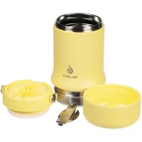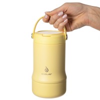 Tabenodo — универсальный многофункциональный термос для работы, школы, похода и путешествия. В компактном корпусе разместились ложка, тарелка и емкость для любимого блюда. Матовая поверхность приятна на ощупь, а силиконовая ручка удобна для переноски. Емкость 590 мл.