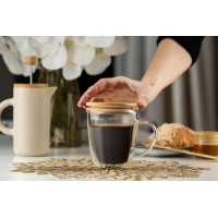 Описание Кружка с двойными стенками Kupla с бамбуковой крышкой