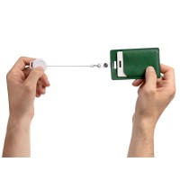 На ретрактор можно поместить бейдж, визитку или магнитную карту. В корпусе спрятан сворачивающийся шнур, который позволяет при необходимости демонстрировать содержимое держателя, не снимая его.