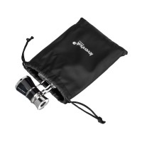 Бинокль имеет малый вес и размер, так что легко поместится в театральную сумочку. В комплект входит мешочек-футляр, размером 14х10,5 см.
