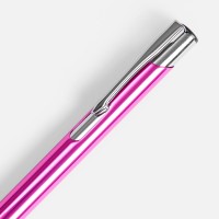 Яркая шариковая ручка с глянцевым цветным корпусом и хромированными деталями.
