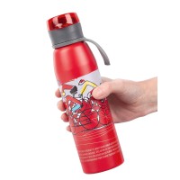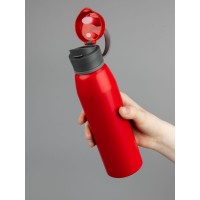 Легкая бутылка для спорта с откидной крышкой и силиконовой петлей для удобной транспортировки.