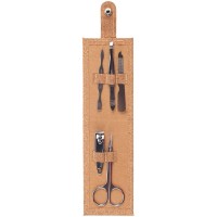 Набор для маникюра в футляре из пробки с 5 инструментами из нержавеющей стали: пилкой, ножницами, кусачками для ногтей, пинцетом и лопаткой для кутикулы.