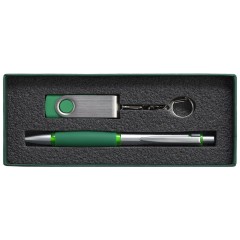 Коробка Notes с ложементом для ручки и флешки, зеленая
