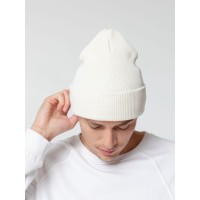 Двухслойная шапка, связанная резинкой, с широким отворотом.