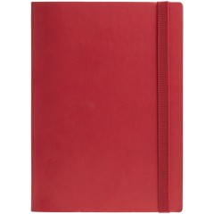 Ежедневник с гибкой обложкой выполнен из материала Latte, красный РР, и дополнен резинкой шириной 1 см, капталом и ляссе красного цвета.