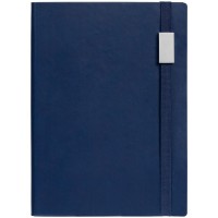 Ежедневник с гибкой обложкой, выполнен из материала Latte, темно-синий XX, дополнен резинкой шириной 1 см, капталом и ляссе синего цвета.