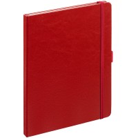 Еженедельник в твердой обложке выполнен из материала Nebraska, красный РР, дополнен резинкой, петлей для ручки и ляссе красного цвета.