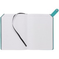 Ежедневник с гибкой обложкой и тонированным обрезом. Выполнен из материала Latte, морская волна II, дополнен черным ляссе.