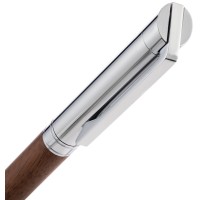 Шариковая ручка в деревянном корпусе с металлическими деталями.