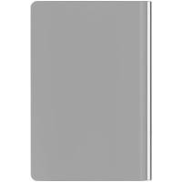 Зауженный ежедневник с гибкой обложкой и металлическим корешком, выполнен из материала Soft Touch, серый СС, дополнен серебристым обрезом блока и ляссе.