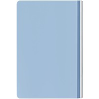 Ежедневник с гибкой обложкой и металлическим корешком, выполнен из материала Soft Touch, голубой JJ, дополнен серебристым обрезом блока и ляссе.