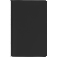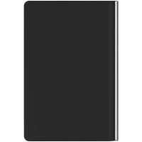 Ежедневник с гибкой обложкой и металлическим корешком, выполнен из материала Soft Touch, черный АА, дополнен серебристым обрезом блока и ляссе.