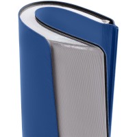Ежедневник с гибкой обложкой и металлическим корешком, выполнен из материала Soft Touch Ultra, синий НН, дополнен серебристым обрезом блока и ляссе.