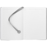 Ежедневник с гибкой обложкой, выполнен из материала La Fite, темно-серый ЕЕ, дополнен ляссе в цвет обложки с металлическим шильдом.
