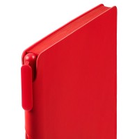 Удобный ежедневник с гибкой обложкой и местом под ручку в корешке, миниатюрная ручка из переработанного пластика и компактная самосборная коробка — простые составляющие полезного делового набора.