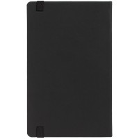 Блокнот в твердой обложке, выполнен из материала Soft Touch, черный АА, дополнен резинкой и ляссе в цвет обложки.