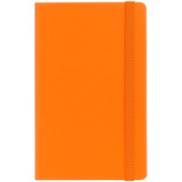 Блокнот в твердой обложке, выполнен из материала Soft Touch, оранжевый ОО, дополнен резинкой и ляссе в цвет обложки.