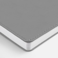 Ежедневник с гибкой обложкой из материала Soft Touch, серый СС и Latte, серый (внутренний материал), дополнен петелькой для ручки из покровного материала, капталом, ляссе и закрашенным срезом обложки в цвет материала.