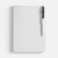 Ежедневник с гибкой обложкой из материала Soft Touch, белый BB, дополнен петелькой из покровного материала для ручки, капталом, ляссе и закрашенным срезом обложки в цвет материала.