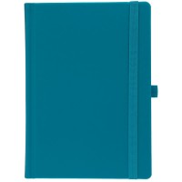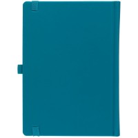 Ежедневник с твердой обложкой без поролона, выполнен из материала Soft Touch, цвет морской волны II, дополнен резинкой шириной 1 см, петлей-резинкой для ручки, капталом и ляссе темно-бирюзового цвета.