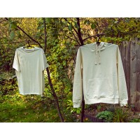 Классическая толстовка для повседневного использования с карманом-кенгуру и капюшоном. Сделана из натурального хлопка без применения красителей. Подкладка без начеса (french terry). Манжеты и низ выполнены из рибаны 2х2. Капюшон регулируется широкими шнурками.