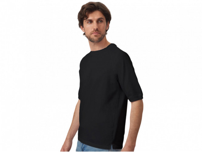 Футболка выполнена из хлопкового френч терри с петельками на изнаночной стороне. Горловина обработана рибом 2х2 и дополнительно усилена тесьмой-елочкой с внутренней стороны спинки и дополнена кокеткой по спинке для нанесения логотипа клиента. Рукав реглан продублирован рибом по низу. Разрезы в боковых швах. Гладкая поверхность полотна позволяет идеально нанести изображение. Футболка комфортного силуэта. - кокетка на внутренней стороне спинки для нанесения - комфортный силуэт - мягкое и качественное полотно френч терри