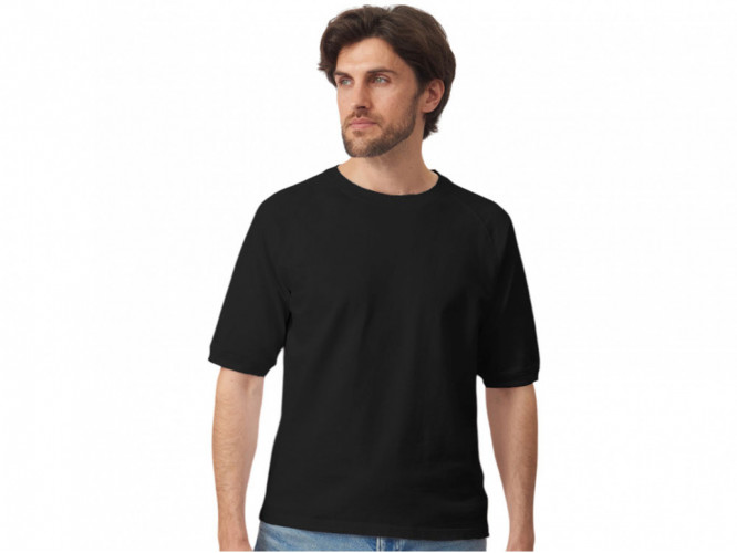 Футболка выполнена из хлопкового френч терри с петельками на изнаночной стороне. Горловина обработана рибом 2х2 и дополнительно усилена тесьмой-елочкой с внутренней стороны спинки и дополнена кокеткой по спинке для нанесения логотипа клиента. Рукав реглан продублирован рибом по низу. Разрезы в боковых швах. Гладкая поверхность полотна позволяет идеально нанести изображение. Футболка комфортного силуэта. - кокетка на внутренней стороне спинки для нанесения - комфортный силуэт - мягкое и качественное полотно френч терри