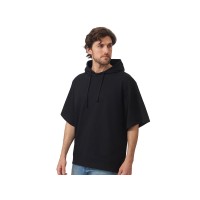 Худи с коротким рукавом выполнено из хлопкового френч терри с петельками на изнаночной стороне. Подкладка капюшона выполнена из основного полотна для объемной посадки. Модель комфортной и актуальной посадки оверсайз отлично подходит для обычной жизни и в качестве промо мерча. - оверсайз посадка- низ обработан рибом 2х2 и дополнительно отстрочен для укрепления- мягкое и качественное полотно френч терри- увеличенная зона для нанесения из-за отсутствия кармана