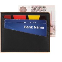 Чехол выполнен из материала Soft Touch Pearl, черный АА, дополнен окрашенным срезом края и внутренним карманом из цветного картона. Имеет 4 отделения для кредитных карт и 1 отделение для купюр. Без индивидуальной упаковки.
