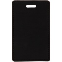 Чехол выполнен из материала Soft Touch Pearl, черный АА, дополнен окрашенным срезом края и внутренним карманом из цветного картона. Подходит для пропуска размером 9,5х5,7 см.