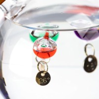 Термометр Галилео оригинальной формы, напоминающей глобус, добавит индивидуальности домашнему или офисному интерьеру. В основе его работы лежит физическая закономерность, впервые отмеченная великим Галилео Галилеем: плотность жидкости увеличивается при снижении температуры и уменьшается при ее повышении. И теперь стеклянные шарики в жидком парафине не только радуют глаз, но и позволяют с легкостью определить температуру в помещении. Термометр заполнен жидким парафином. Для использования в помещении. Температура определяется по значению на самом верхнем всплывшем шарике.