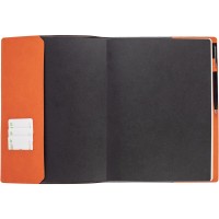 Ежедневник в суперобложке выполнен из материала La Fite, оранжевый ОО, дополнен ляссе и капталом черного цвета.