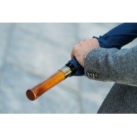 Прямая деревянная ручка с петлей из натуральной кожи и кнопкой открытия зонта