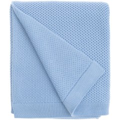 Модель: однотонный плед с фактурной вязкой, которая позволяет сделать его воздушным и объемным. Чередуя различные типы петель на гладком полотне, можно вывязать любую графику — логотип, текст, товарный знак.