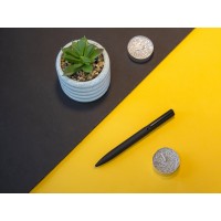 Эта металлическая ручка имеет очень необычную интересную форму — верхняя часть (до поворотного механизма) уже, чем нижняя. За счёт покрытия софт-тач ручка очень приятна на ощупь. При гравировке вскрывается серебристый слой. Немецкие чернила Dokumental и пишущий узел Premec обеспечивают мягкое письмо без лишних усилий.Благодаря поворотному механизму этой ручкой удобно пользоваться.Поставляется в чёрной матовой коробочке с прозрачным логотипом «Lettertone» на дне.• Поворотный механизм• Софт-тач покрытие• Мягкость и лёгкость письма• Нестандартный дизайн